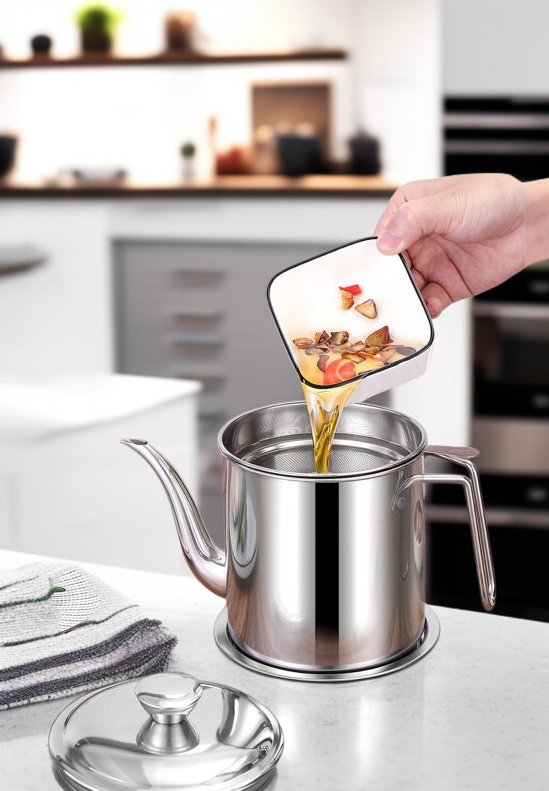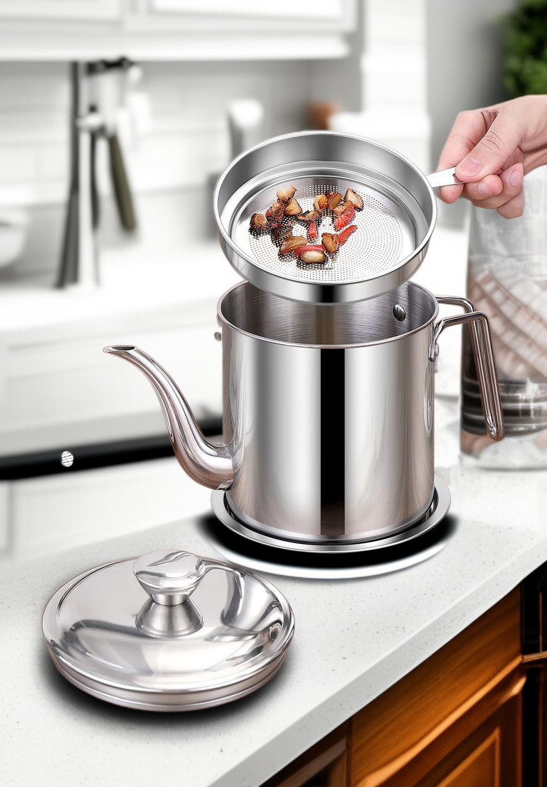 Household kitchen 304 stainless steel oil pot leak-proof large capacity oil storage tank